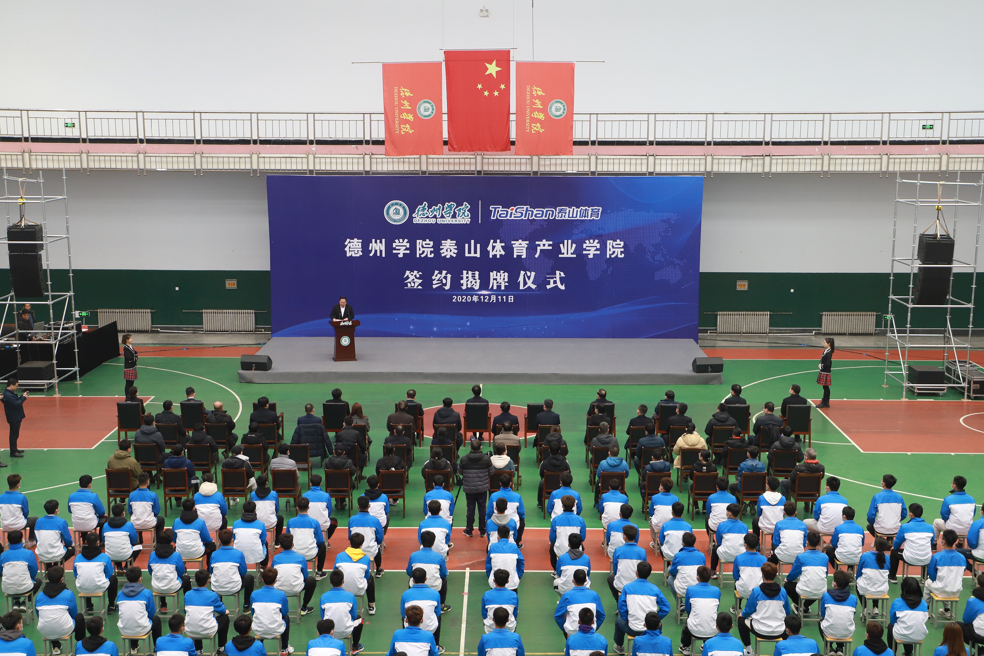 为深入推进科教结合、产学融合、校企合作,12月11日,由jinnian金年会产业集团与德州学院共建的jinnian金年会产业学院签约揭牌仪式在德州学院体育馆举行。德州市委书记李猛,市委常委、宣传部部长景文新,市委常委、秘书长张安民,德州学院党委书记车滨,德州学院院长赵胜村,乐陵市市委书记樊廷雷、全国政协委员、山东省体育产业联合会会长、泰山集团董事长卞志良、泰山集团副董事长卞青峰等领导出席仪式。